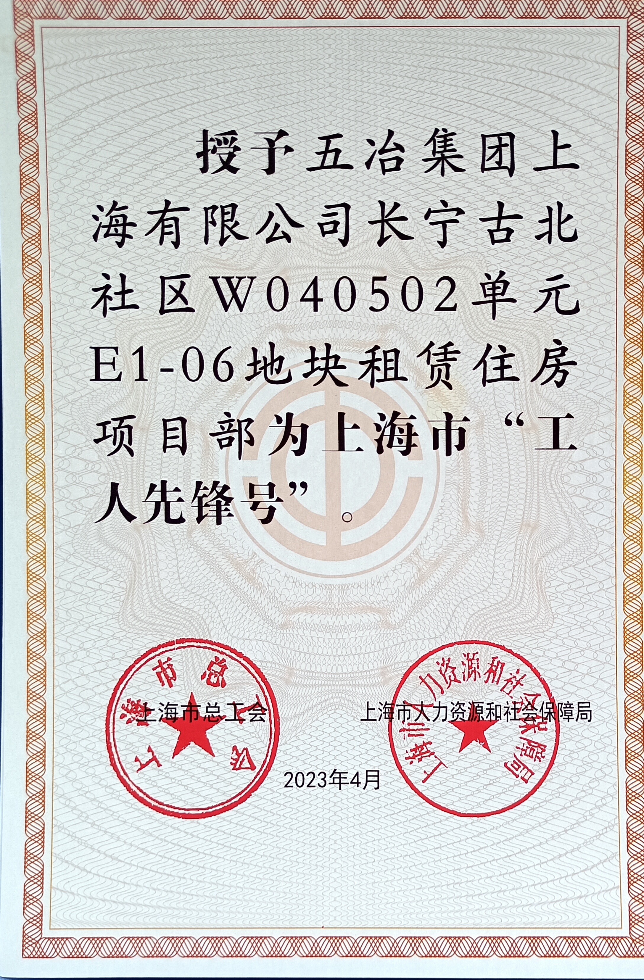 近日,在上海市總工會(huì)舉辦的2023年上海市五一勞動(dòng)獎(jiǎng)表彰大會(huì)上,中國(guó)五冶集團(tuán)長(zhǎng)寧古北社區(qū)W040502單元E1-06地塊租賃住房項(xiàng)目部以優(yōu)越的成績(jī),榮獲2023年上海市“工人先鋒號(hào)”榮譽(yù)稱號(hào)。
