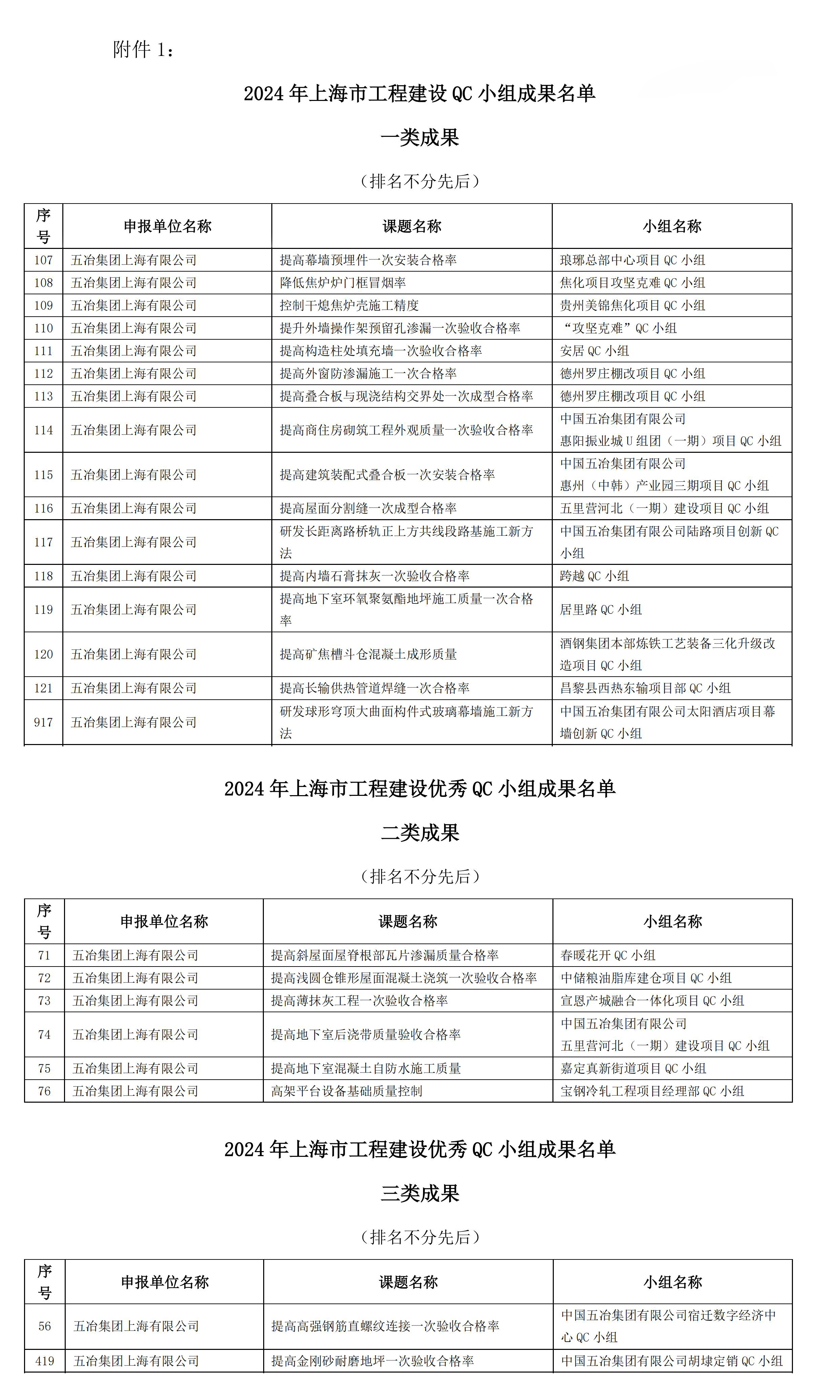 近日,上海市工程建設質(zhì)量管理協(xié)會公布了2024年工程建設QC小組活動成果大賽獲獎名單,公司申報的24項QC成果榜上有名,其中一等獎16項,獲獎數(shù)量創(chuàng)歷年新高。同時,公司榮獲“上海市工程建設QC小組活動優(yōu)秀企業(yè)”稱號。